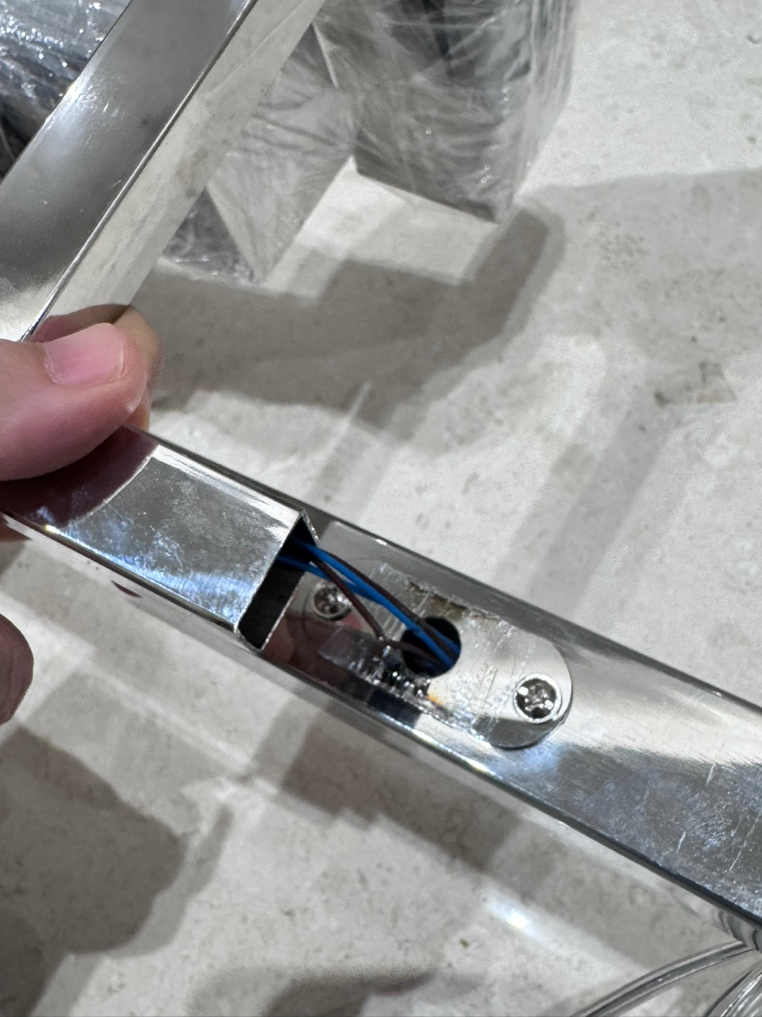 Furthermore, the thin electrical wires have damaged insulation, creating a serious risk of electric shock.As a regular housewife, not a welding technician, I cannot repair welding defects.